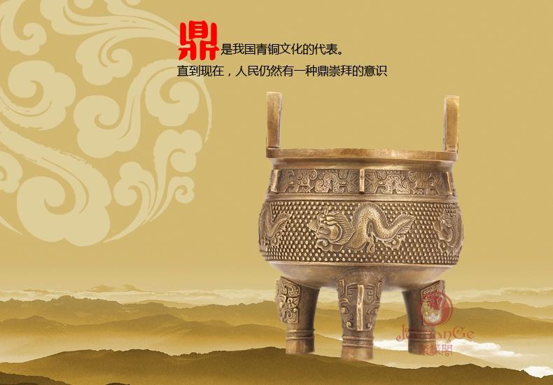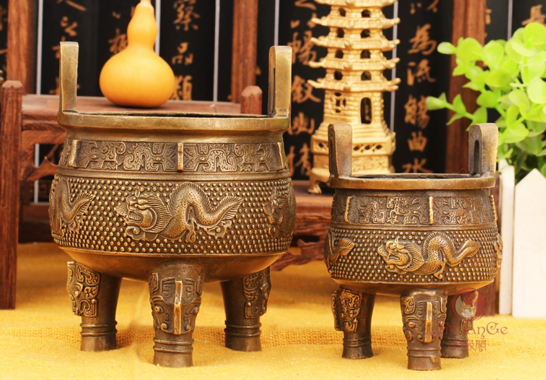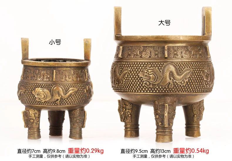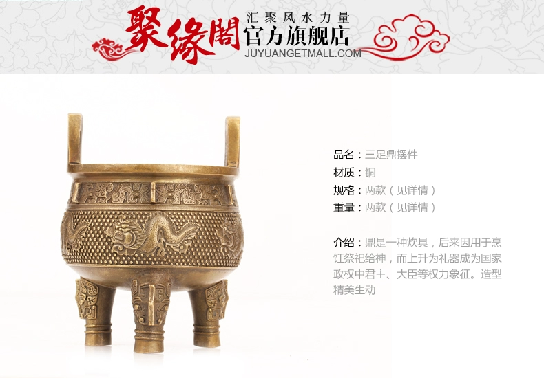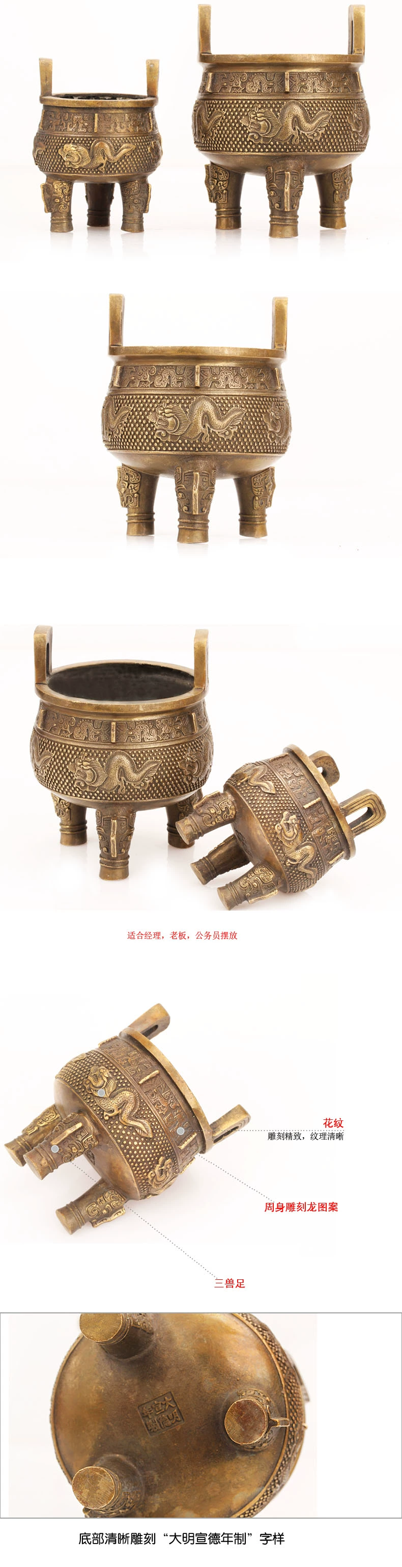 大號直徑9.5cm 高13cm聚緣閣開光風水黃銅龍鼎香爐擺件銅器招財旺財爐鼎神像供奉用品