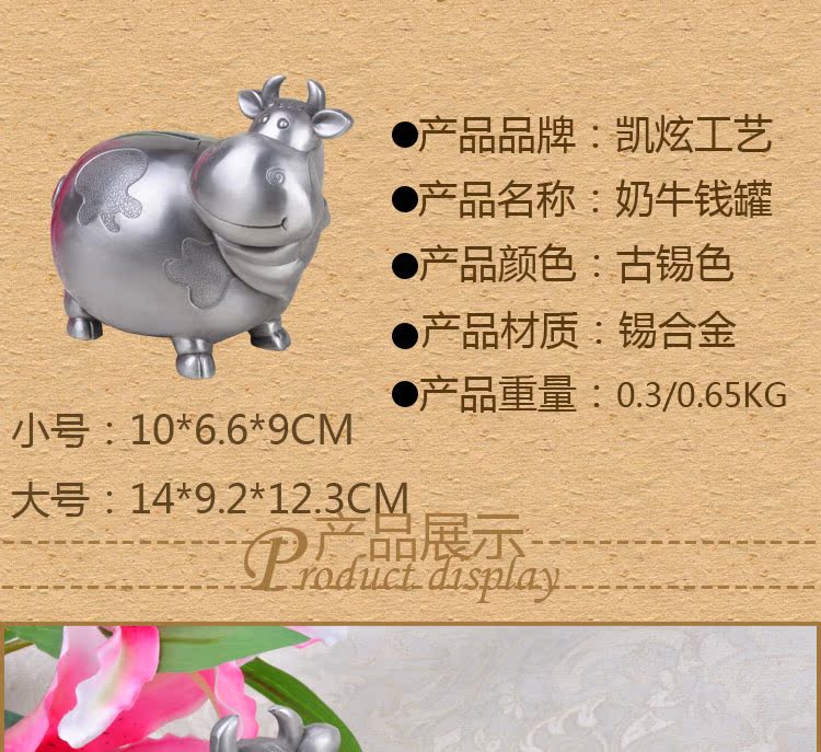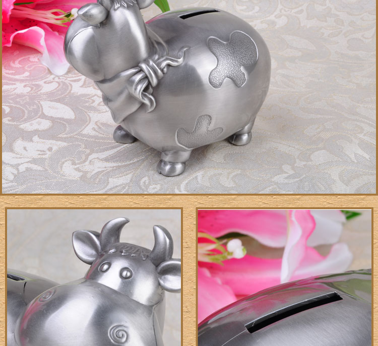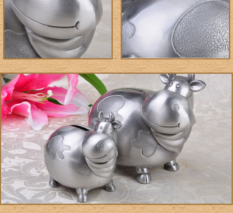 大號古錫色錫制生肖大號存錢罐 創意金屬工藝奶牛儲蓄罐 家居擺設品兒童禮品
