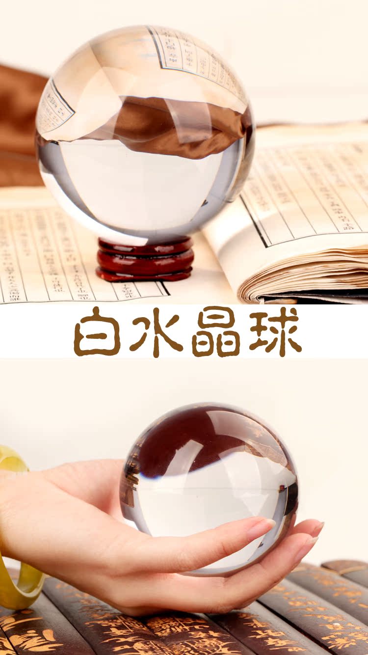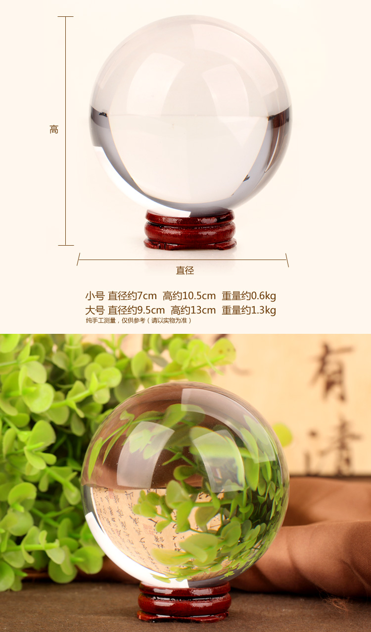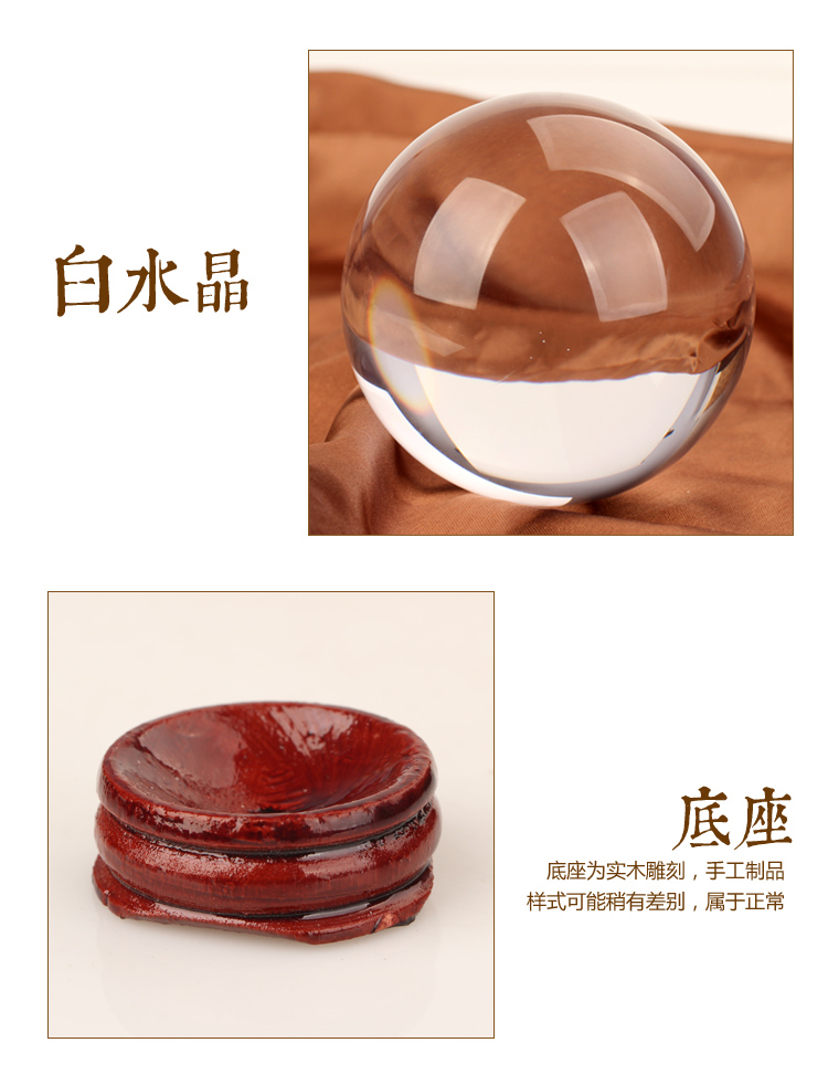 大號水晶球直徑9.5cm聚緣閣天然 白水晶球擺件 帶木質底座水晶底座風水球辦公室招財