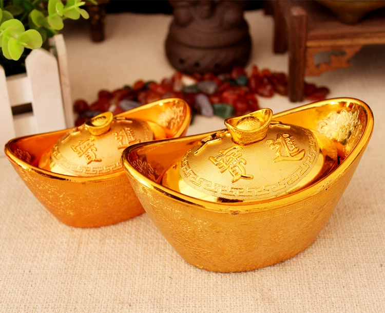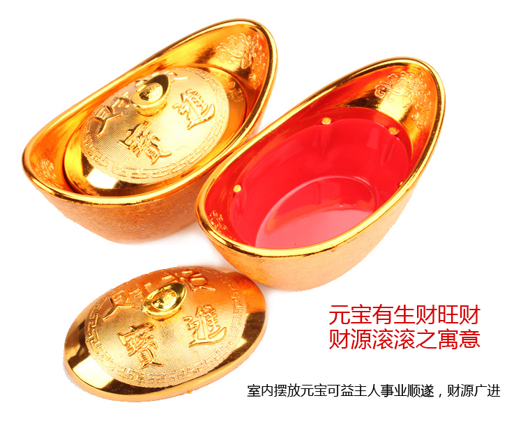 大號13cm聚緣閣小寶塑料寶擺件開蓋寶招財金寶聚寶盆招財擺設