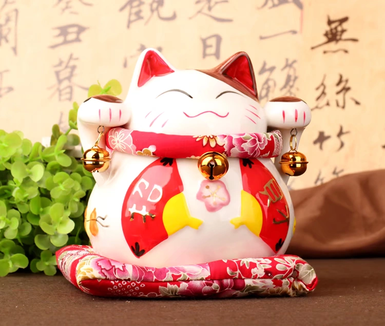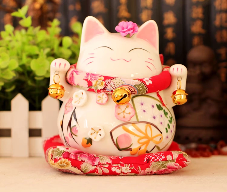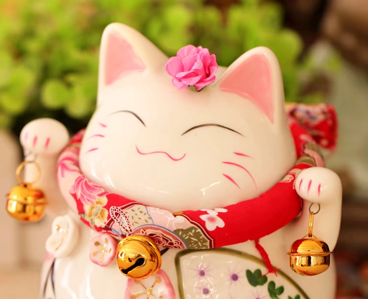 大花季聚緣閣風水招財貓陶瓷花季招財貓儲蓄罐擺件開業結婚招財禮品
