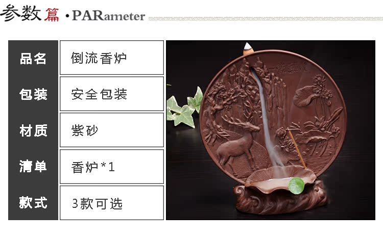 倒流香:主要觀賞使用,為出煙景出煙大燃燒時間短,味道自然較濃。