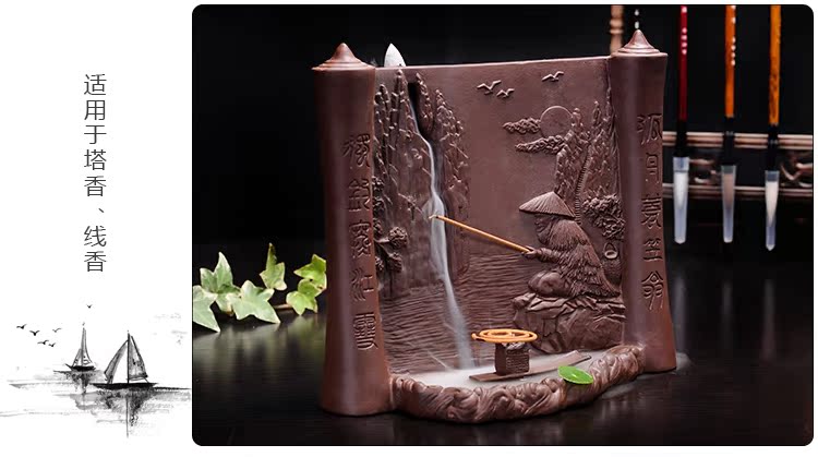 一鷺連升高山流水倒流香爐紫砂陶瓷熏香創意家居大擺件煙到流香薰爐檀香爐