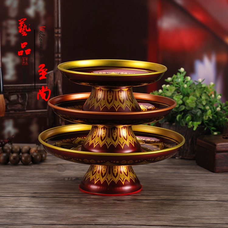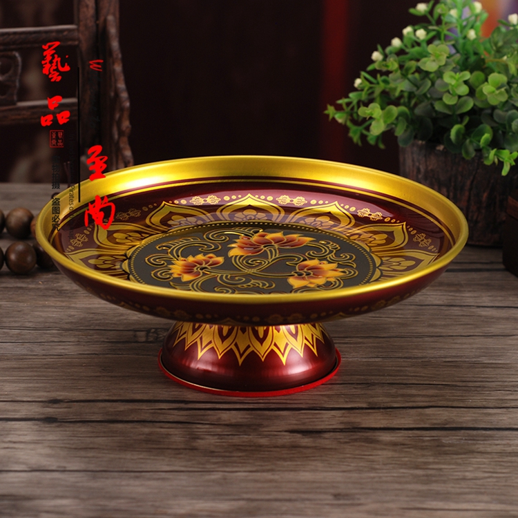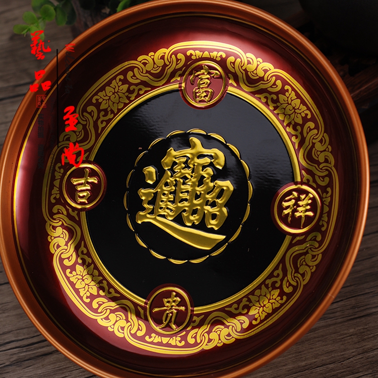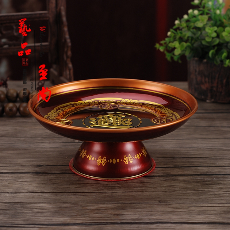 6寸(招財進寶)供盤果盤合金蓮花 招財進寶供果盤水果盤擺件佛堂佛教用品
