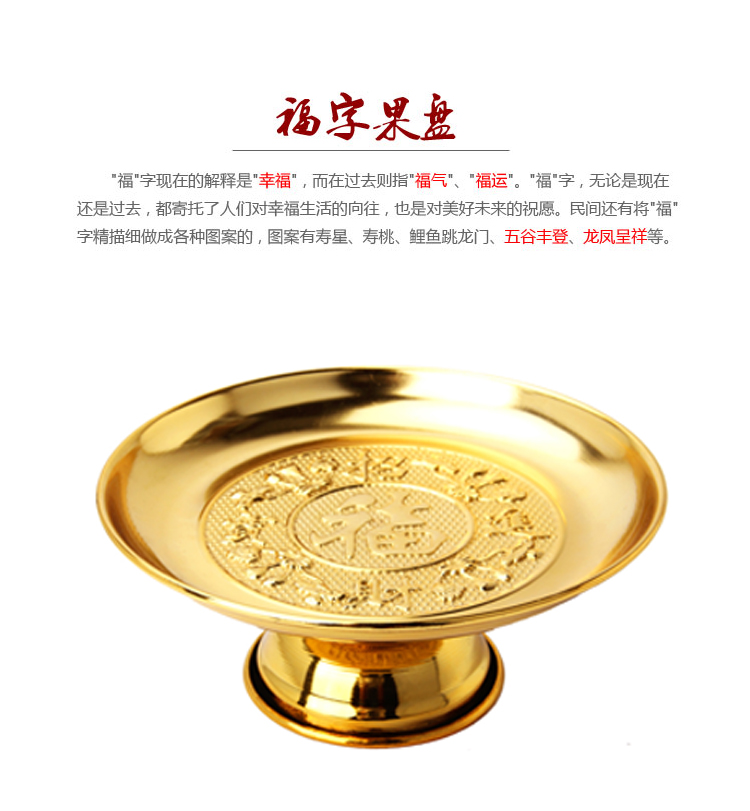 此款合金是供奉果盤5寸 6寸 7寸為招財進寶圖案,8寸 9寸為福字圖案