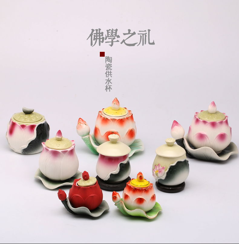 1號佛具陶瓷供水杯 雙層大悲水杯 陶瓷荷花供杯擺件 圣水杯 供佛杯子