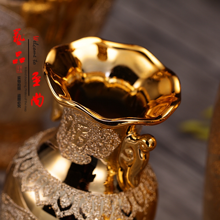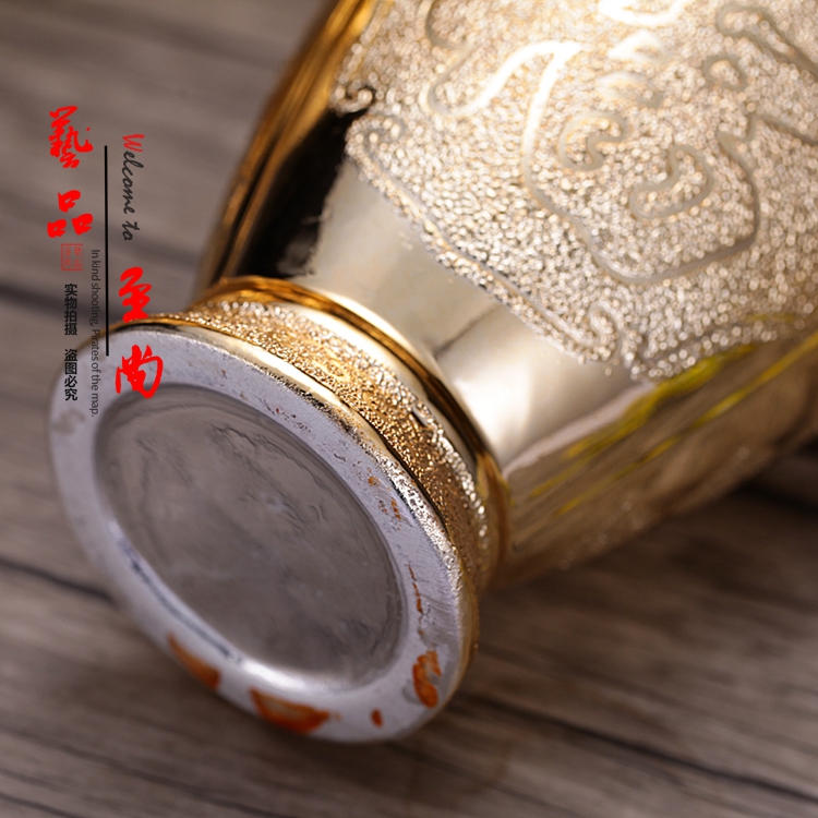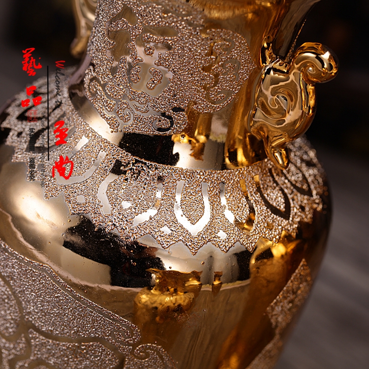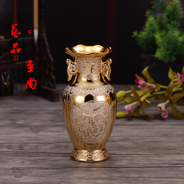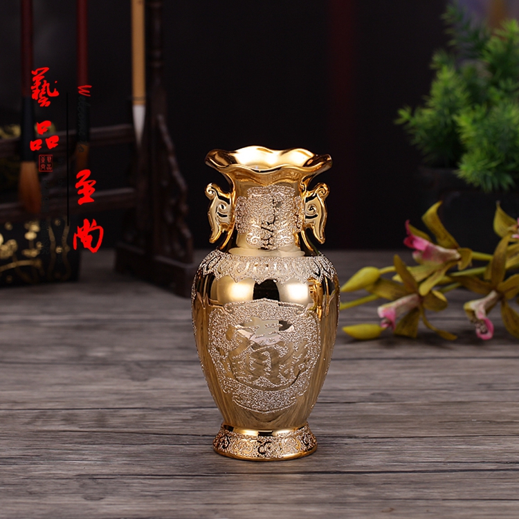 【創星工藝】 注:標價是一個 限時促銷 【品名】雙龍進寶花瓶 【材質】陶瓷鍍金 【規格】7寸 8寸 10寸 12寸 7寸口部直徑7.2cm;高約17.7cm;整體直徑約9.5cm 8寸口部直徑8.8cm;高約20cm;整體直徑約11.2cm 10寸口部直徑10.5cm;高約24.7;整體直徑約13.5cm 12寸口部直徑12.7cm;高約29.5cm;整體直徑約16cm