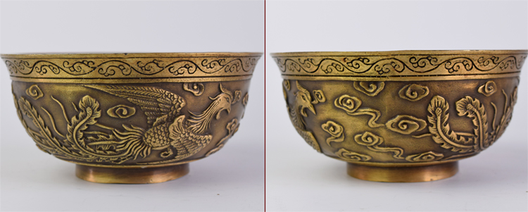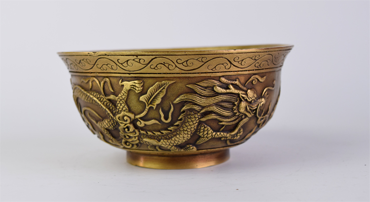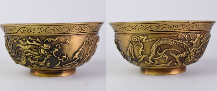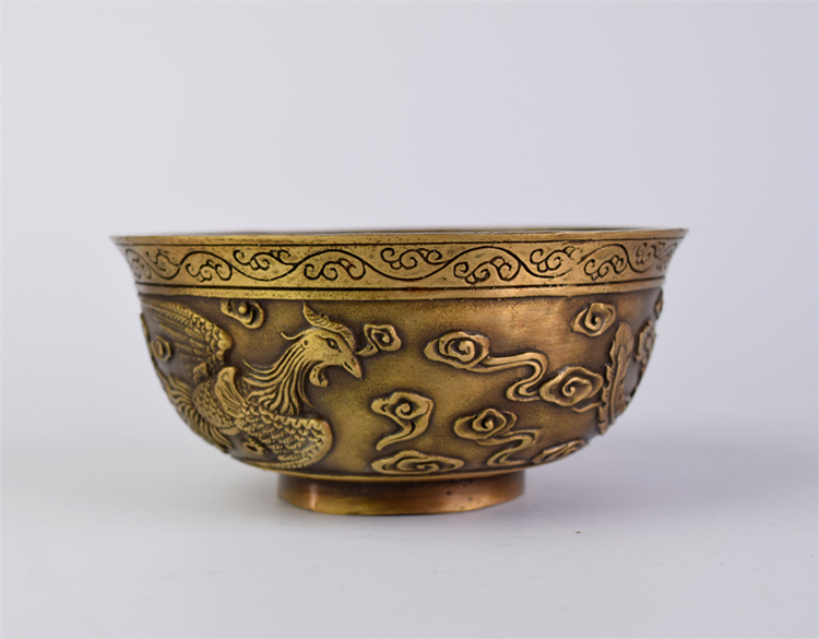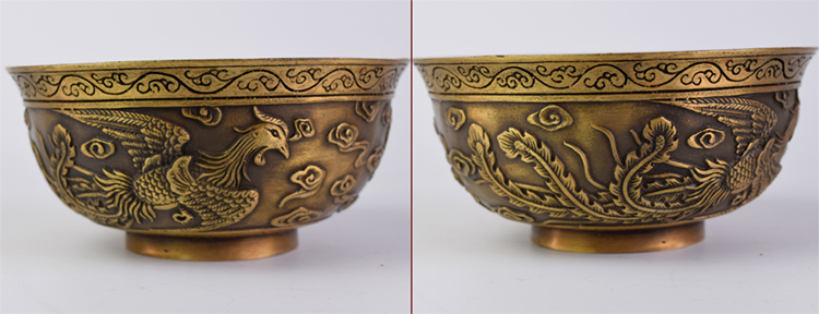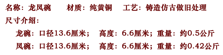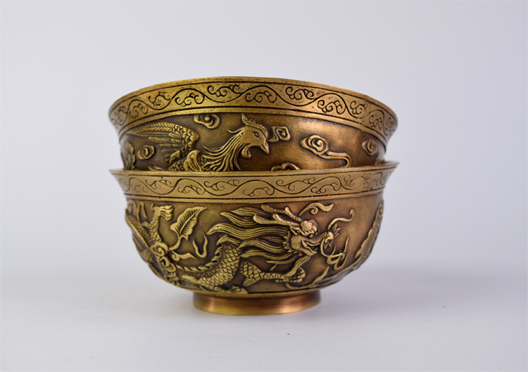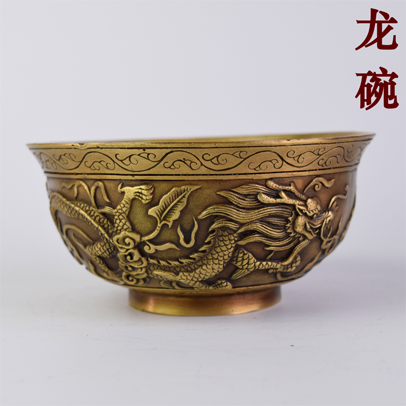 龍碗純銅碗擺件龍碗鳳碗工藝品黃銅鑄造仿古做舊碗龍鳳碗風水碗