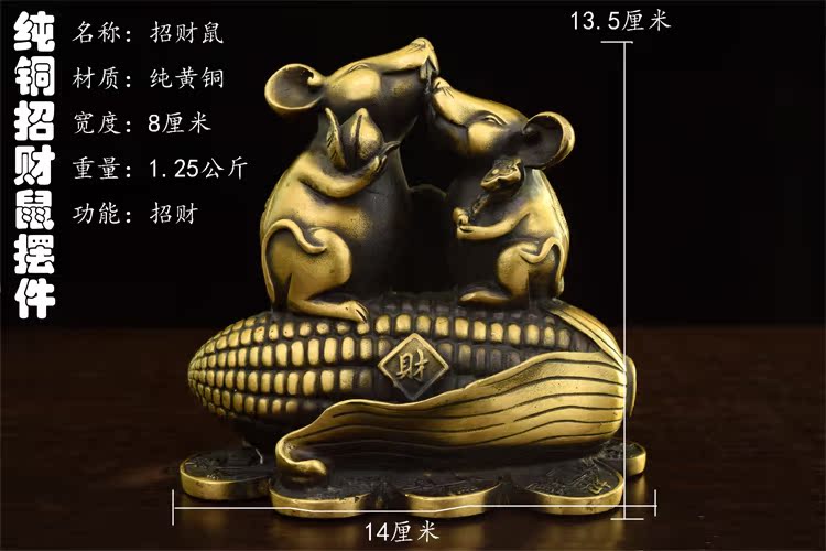 黃色純銅鼠擺件玉米鼠黃銅重型鼠擺件財鼠福鼠工藝品一對大小銅鼠