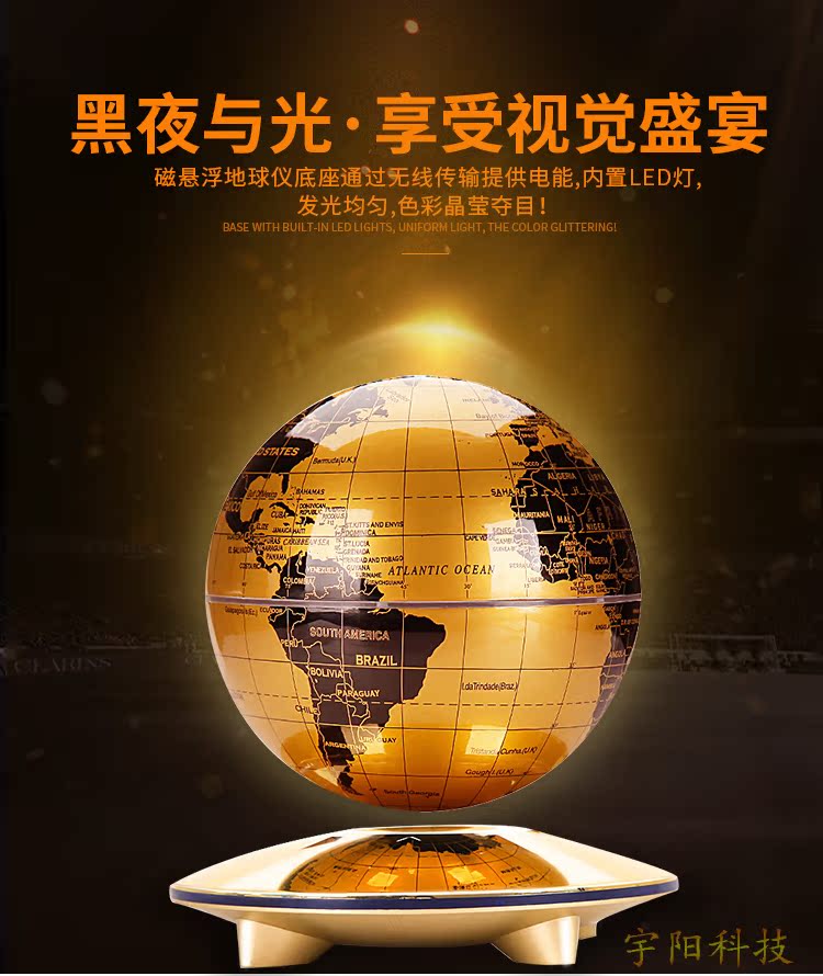 黃色8寸發光自轉磁懸浮地球儀 辦公室桌面擺件創意生日禮物工藝禮品