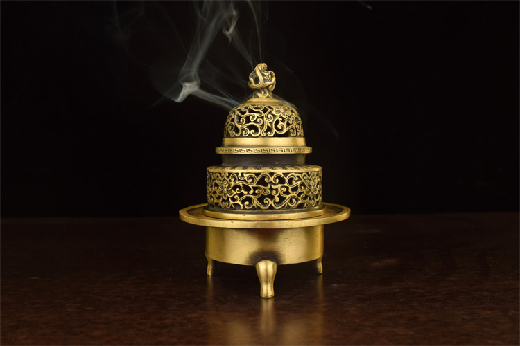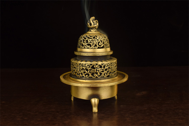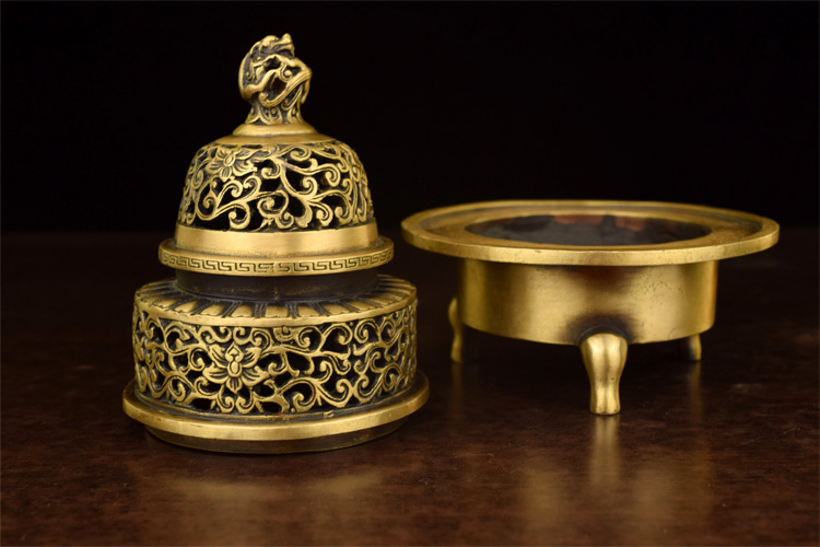 純銅香爐龍蓋盤香熏爐黃銅材質仿古宣德家居擺件裝飾銅器熏香