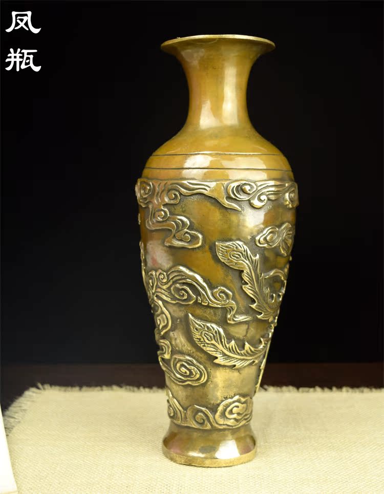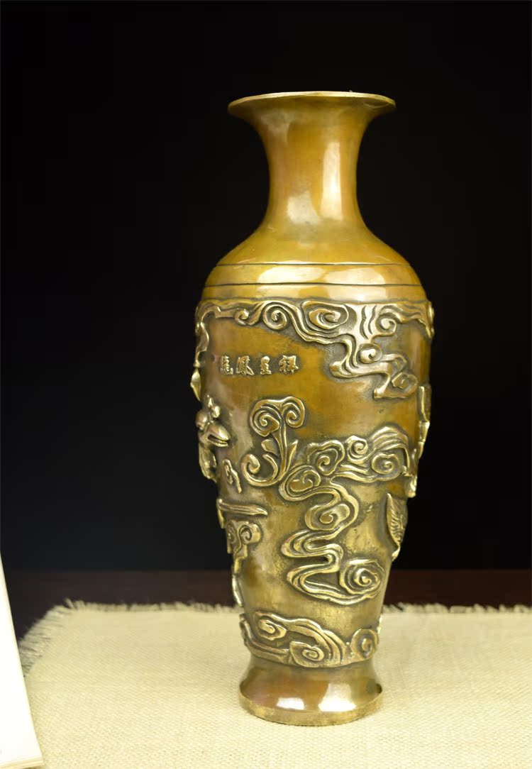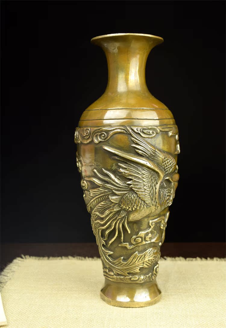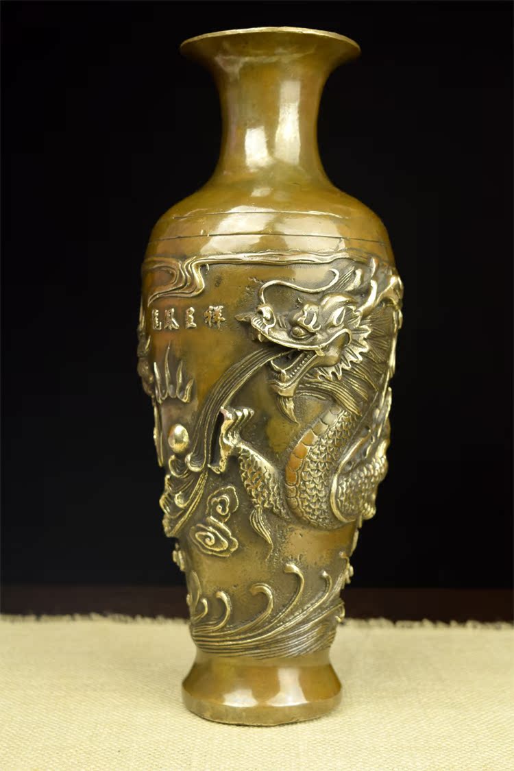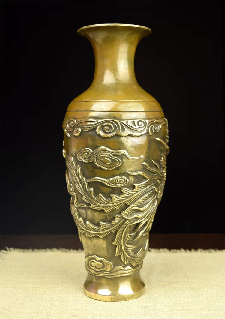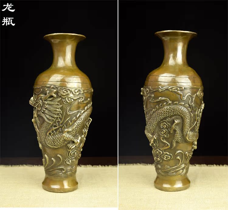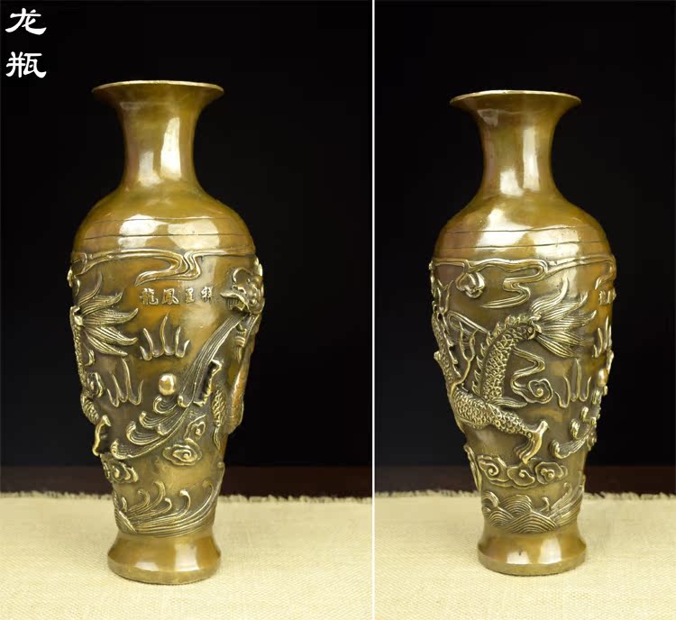 單只龍瓶純銅花瓶龍鳳花瓶擺件大號花瓶純銅仿古結婚禮品婚慶擺件百年好合