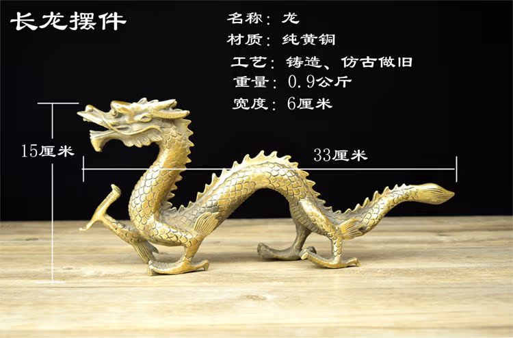 長33厘米純銅龍擺件仿古做舊龍工藝品生肖龍大小號龍風水龍鎮宅化煞銅龍