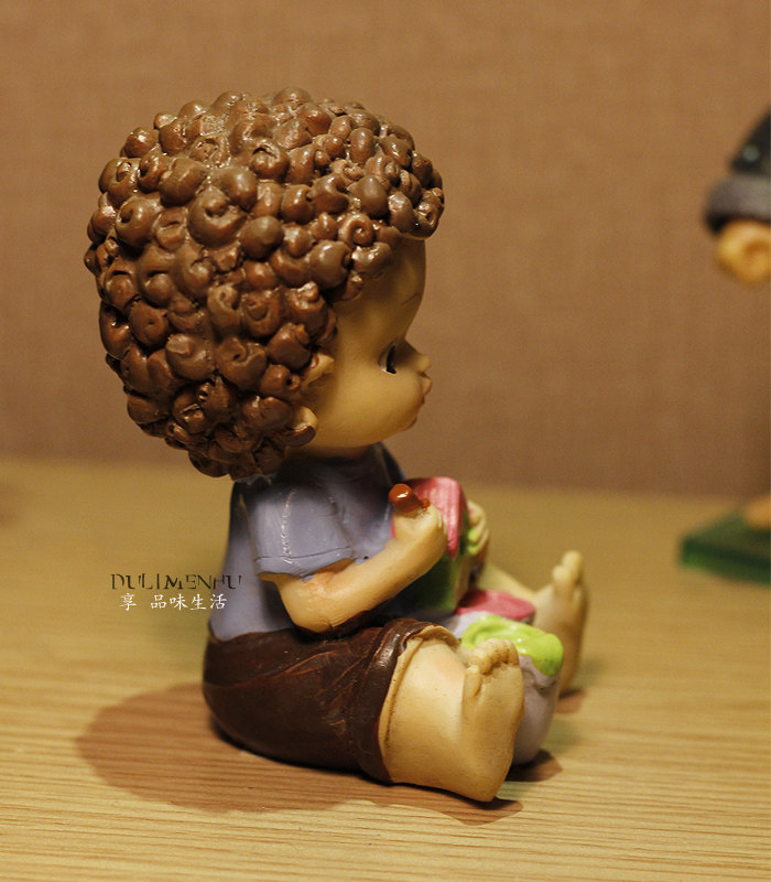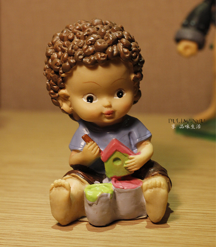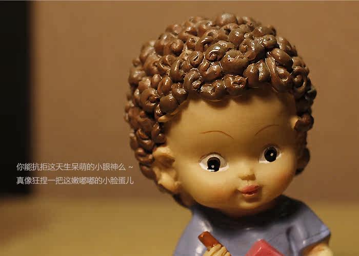 歐式樹脂 可愛巧克力卷發小孩玩偶玩具 裝飾新房擺件禮物