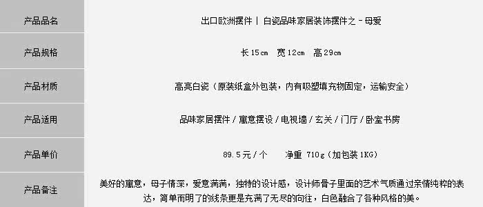 歐式簡約現代白瓷家居裝飾 創意生活母愛擺件 母親節禮物生日禮品