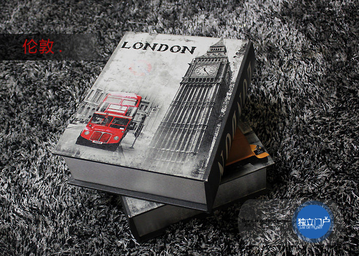 歐式倫敦巴黎城市懷舊風收納盒假書盒現代家居商場店鋪裝飾品擺設