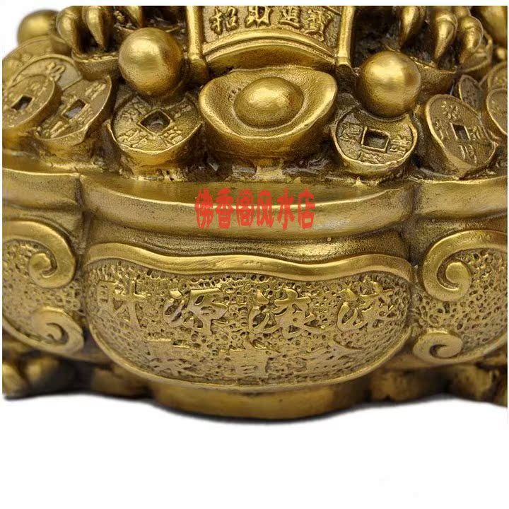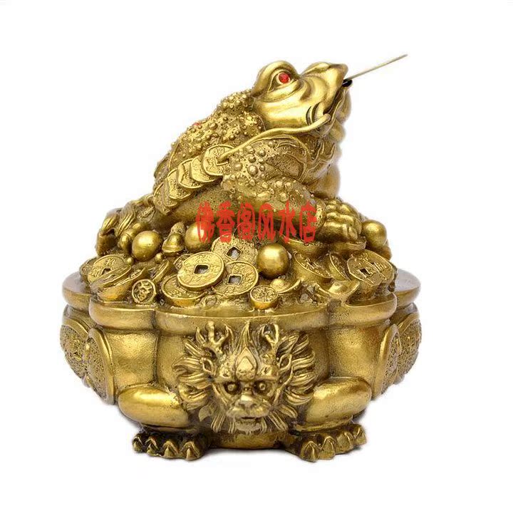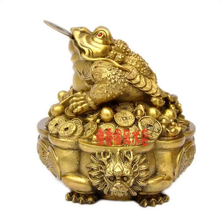 三足金蟾的傳說:傳說它能口吐金錢,是旺財之物。古代有劉海修道,用計收服金蟾以成仙,后來民間便流傳“劉海戲金蟾,步步釣金錢”的傳說。。一日,他降服了長年危害百姓的金蟾妖精,在過程中金蟾受傷斷其一腳,所以日后只余三腳。自此金蟾臣服于劉海門下,為求將功贖罪,金蟾使出絕活咬進金銀財寶,助劉海造福世人,幫助窮人,發散錢財。人們奇之,稱其為招財蟾。” 三腳蟾蜍天性喜歡金銀財寶,對錢財有敏銳洞悉力,很會挖掘財源。劉海禪師平生喜歡布施濟貧,得到三腳蟾蜍之相助,救濟貧窮百姓無數。此后,三腳蟾蜍被認定為”招財寶物”。 金蟾的造型很多,一般為坐蹲于金元之上的三足蟾蜍,背負錢串,豐體肥碩,滿身富貴自足,有“吐寶發財,財源廣進”的美好寓意,所以民間有俗語“得金蟾者必大富”也。 三腳金蟾催財又分口中含錢與不含錢的。含錢的為吐錢向室內,空口的為吸財向外。 吉祥家居此款催財金蟾只有三只腳,背上有北斗七星,頭頂太極兩儀,腳踏元寶山及寫有“招財進寶、一本萬利、二人同心、三元及第、四季平安、五谷豐登、六合同春、七子團圓、八仙上壽、九世同居、十全富貴”等字的銅錢。催財蟾蜍并非普通蟾蜍,它擁有三只腳,與其它四條腳的蟾蜍不同,很會吐錢,所以被當作旺財瑞獸。