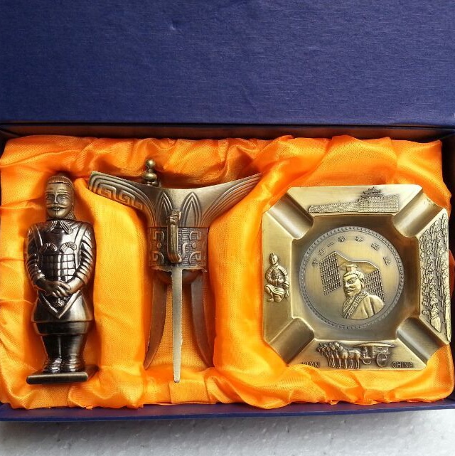 特色手工藝品 青銅器仿古擺件三件套 兵馬俑 煙灰缸 古代帝王酒杯