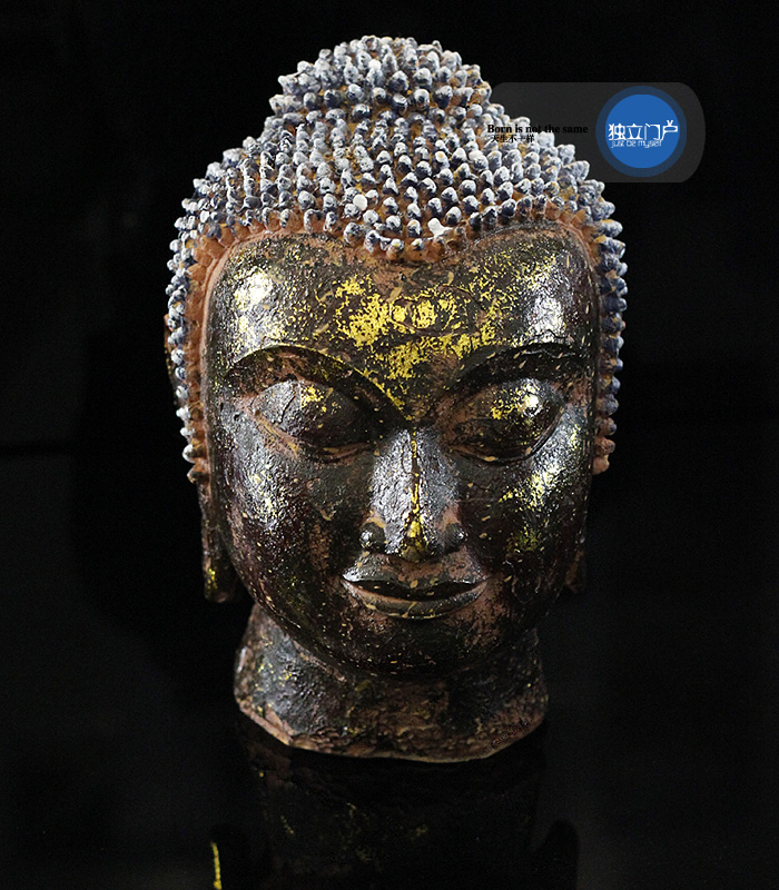 SKULL 出口東南亞復古做舊鎏金泰式樹脂佛頭禪意家居裝飾風水擺件