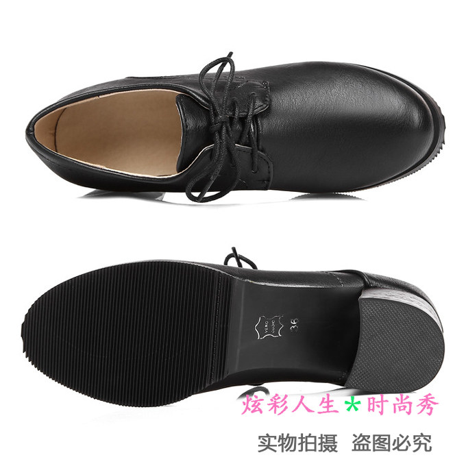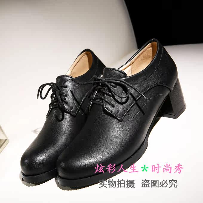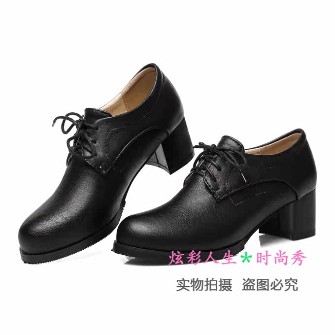描述 【顏色】黑色 【質地】優質PU皮【尺碼】34 -- 45碼(時裝正碼)款式:中款 跟高:約5CM(粗跟)