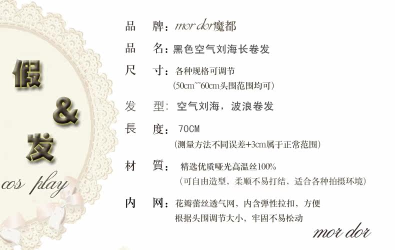 魔都假發原宿日常款黑色空氣劉海長卷發大波浪蓬松甜美款
