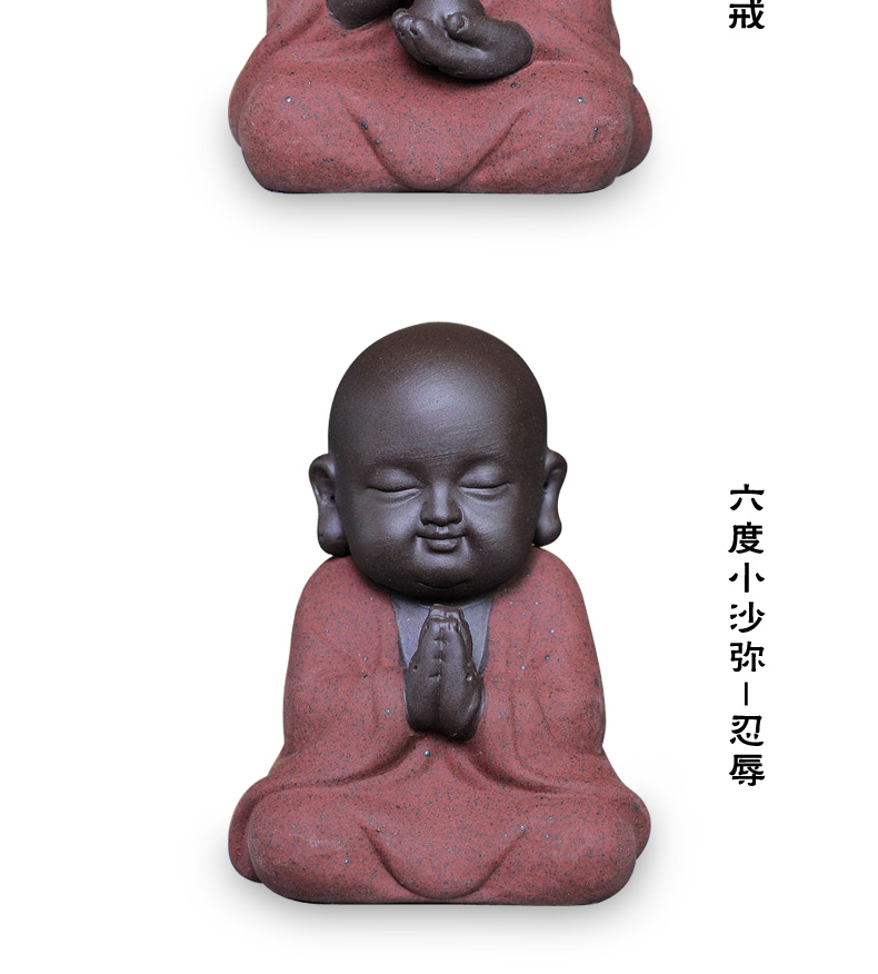 百順福紫砂六度茶寵小沙彌彩砂陶茶玩茶具配件精美手工茶盤擺件