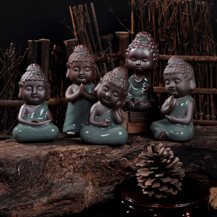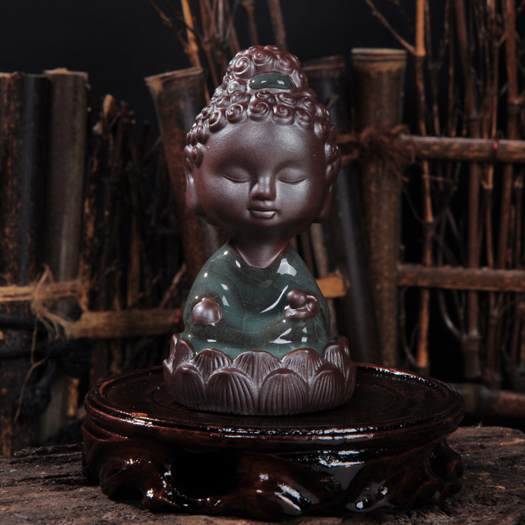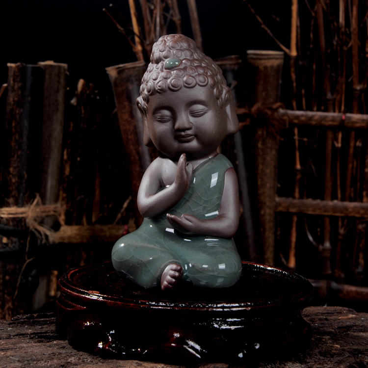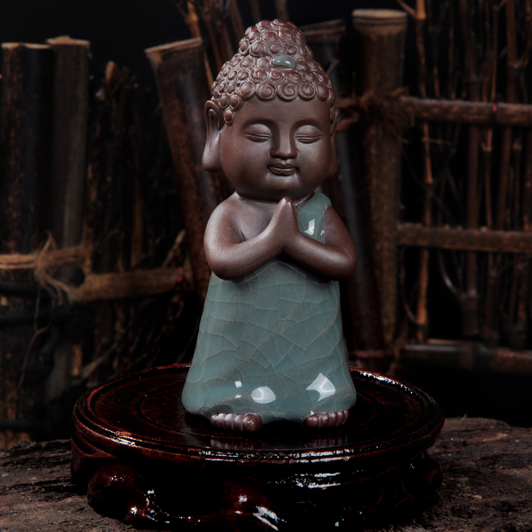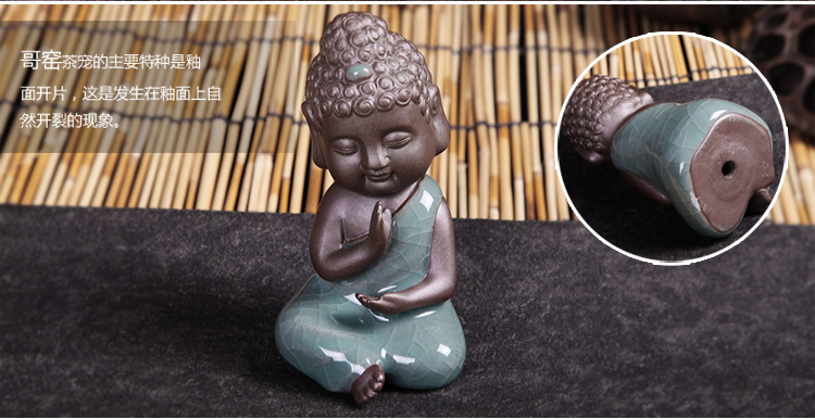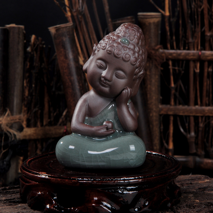 " 新品上架特惠體驗 【產品品名】哥窯精品開片茶寵 Q版佛悟道禪意茶道配件茶玩意茶盤擺件 【產品材質】哥窯 開片釉 如需要底坐如圖顯示 每個底坐要10如圖所示