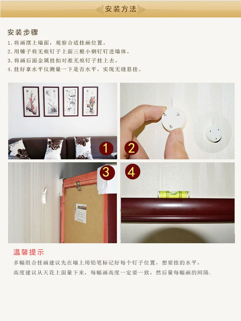 客廳裝飾畫中式書房掛畫三聯有框畫掛畫框水墨國畫牡丹花紅實木框