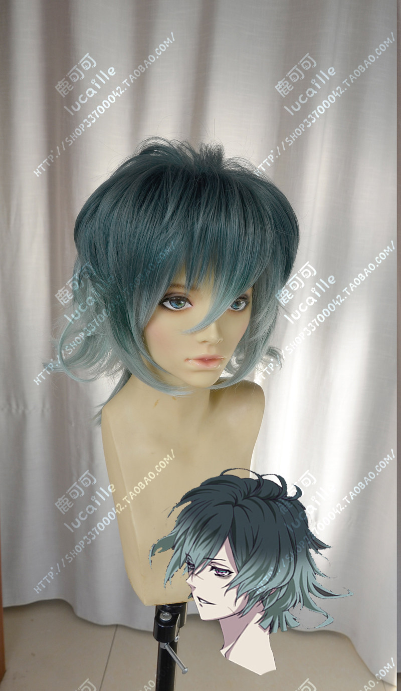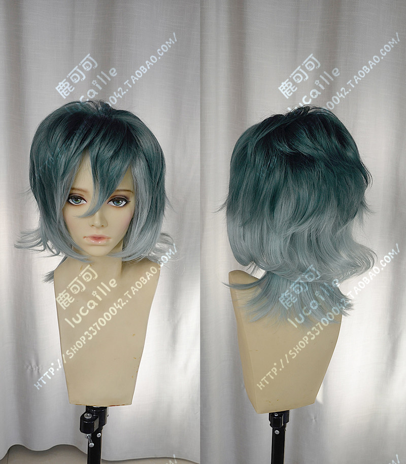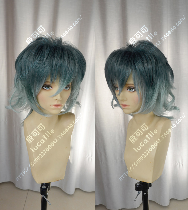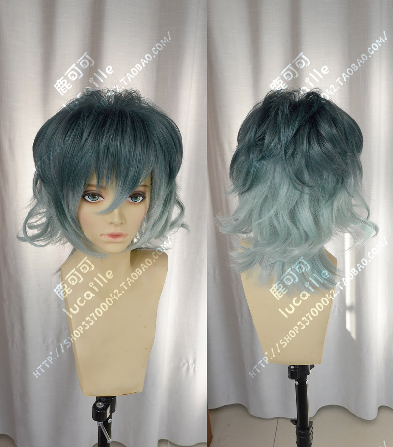 魔鬼戀人 無神梓 石綠漸變水青蓬松短發 動漫裝備配件假發