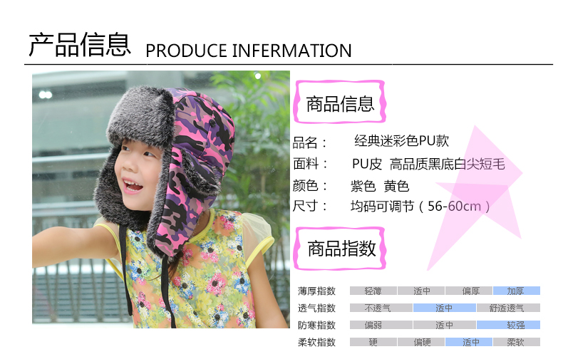 兒童皮東北雷鋒帽子防風寒防雨迷彩騎車護耳戶外滑雪帽