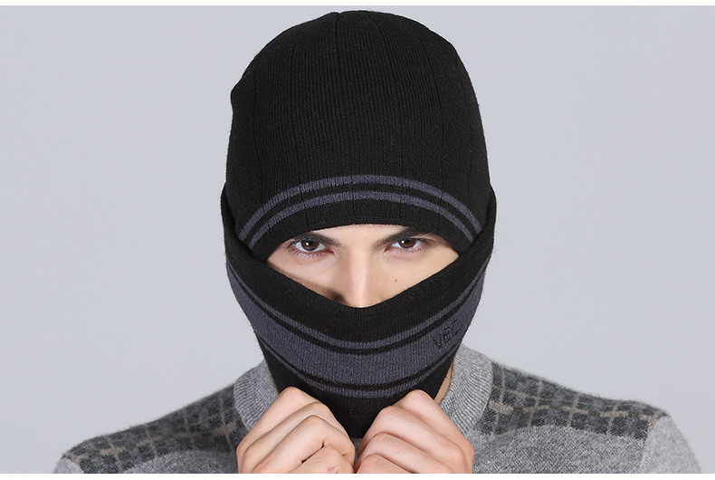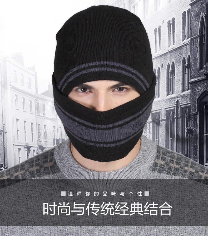 戶外加厚羊毛針織帽騎車防風帽子冬護耳頭套護臉蒙面滑雪帽-207