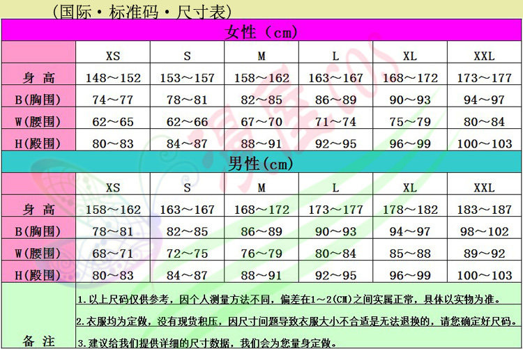 這裡有尺寸和量測方法,供參考 身高----cm 體重---kg 胸圍---cm胸部最豐處平行量一周的實際尺碼 腰圍---cm腰部最細處一周 圍---cm部最豐處一周 肩寬---cm兩肩末處的寬度 衣長---cm從肩開始往下量到喜歡的長度 袖長---cm肩末端處至手背上關節處的長度 褲長---cm腰部至腳背處長度 有的還需要你的頭圍-手臂-腿部圍度等-據圖片效果而定 【關於色差】:網絡購買非實體,照片拍攝,采光,顯示等原因會有一定色差。特別是量身定做的布料批次,工人手工不同,蕾絲,扣子等小細節會略有不同的可能,對以上情況者慎拍 【掌櫃不自助訂制流程】: 1、拍下商品,把自己的尺寸按照上面的“定制需要尺寸”寫在買家留言裡,尺寸需要淨尺寸 2、確認自己的收件正確,付款給支付寶,大約一周左右即可發貨,具體的時間請掌櫃 3、拍下多件需要修改的,每日晚上修改 4、下單以款到支付寶之日算起,光拍下商品不付款給支付寶,不做下單處理,敬請諒解 【質量保證】: 收到本店衣服後出現以下問題一律包換,但隻限更換同款式同色衣服。