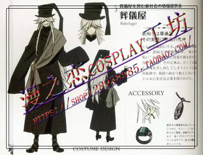 " 【商品名稱】漫之戀 cosplay黑執事 葬儀屋/喪儀人cos服全套【配帽子,腰鏈】 【面料說明】尼,卡單皇,可選擇 【全套內容】長外套,裡衣,褲子,披肩,帽子,腰鏈 【定做需要尺寸】:三圍 身高 體重 肩寬 1、拍下商品,把自己的尺寸按照上面的“訂制需要尺寸”寫在買家留言裡2、確認自己的收件正確,付款給支付寶,7天左右即可發貨