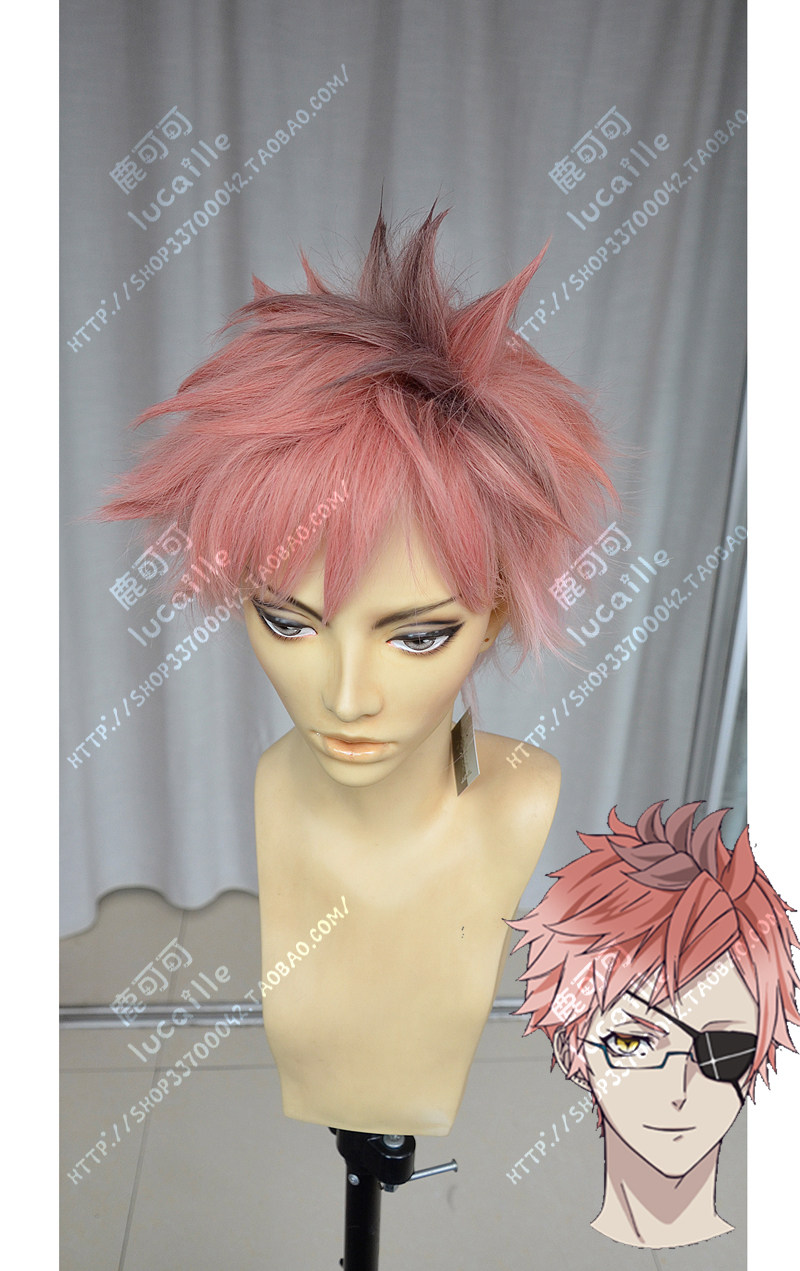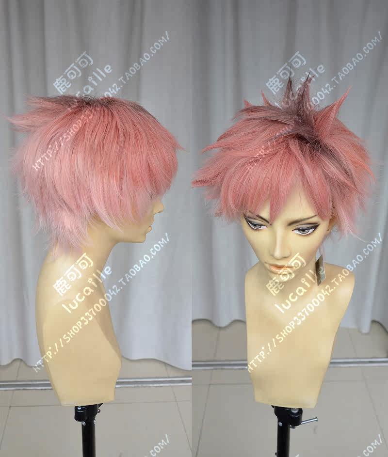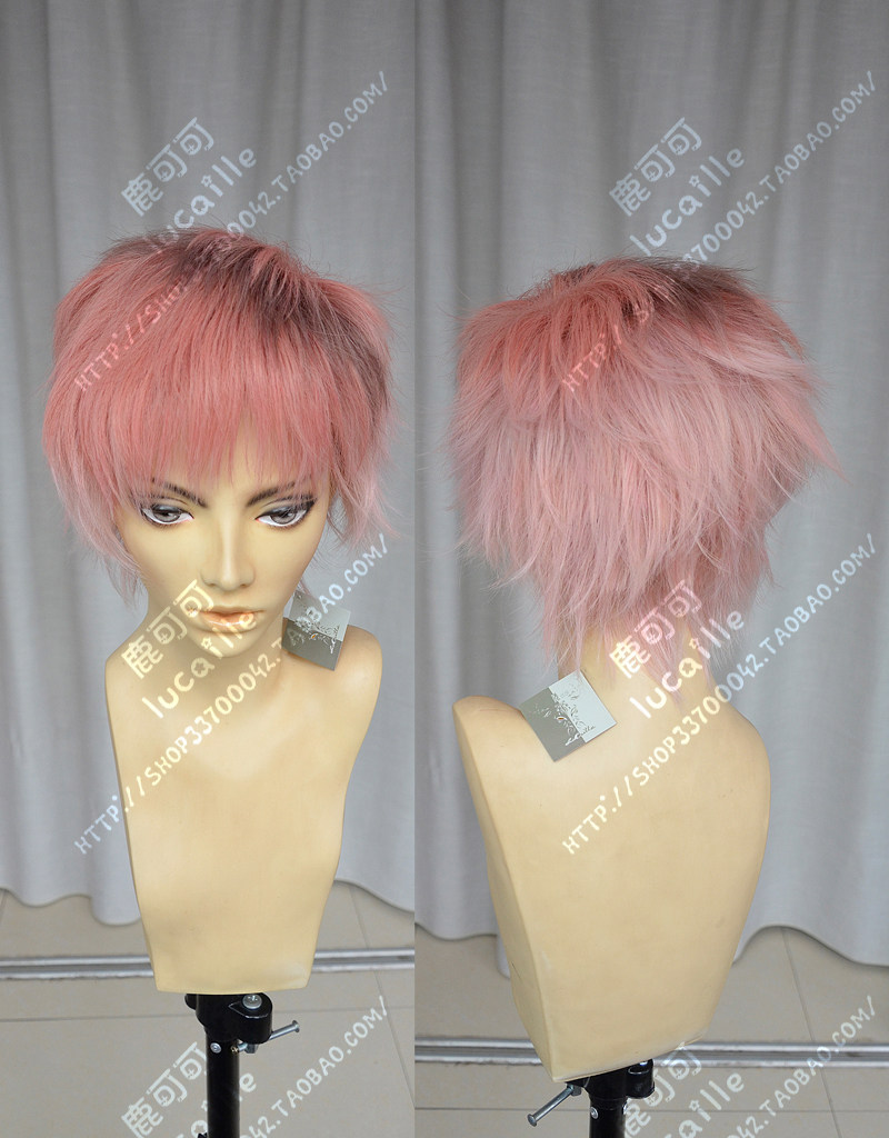 顏色:珊瑚粉橘漸變頭頂斜款咖啡粉棕挑染