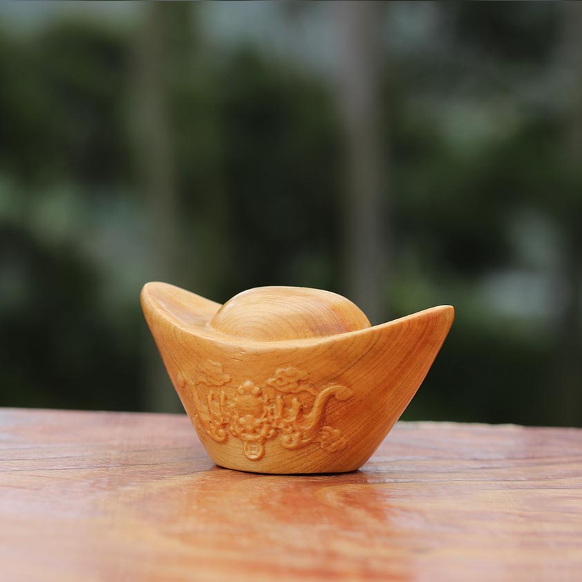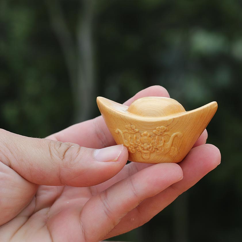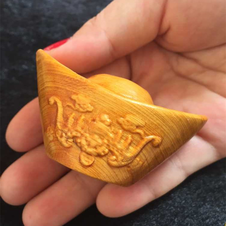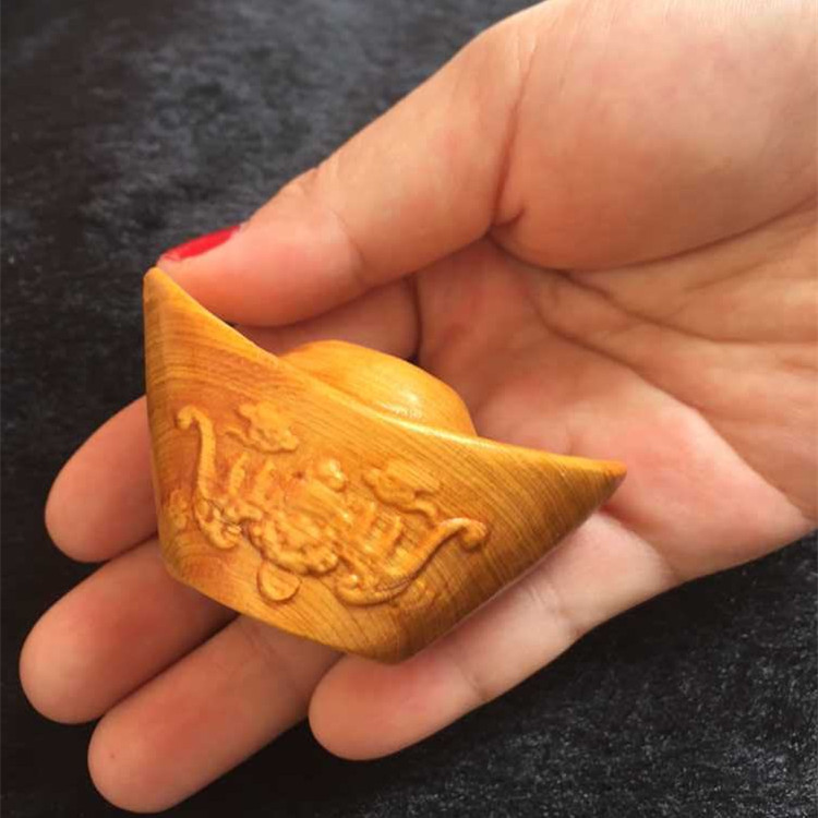 【品名】木雕金元寶手把件