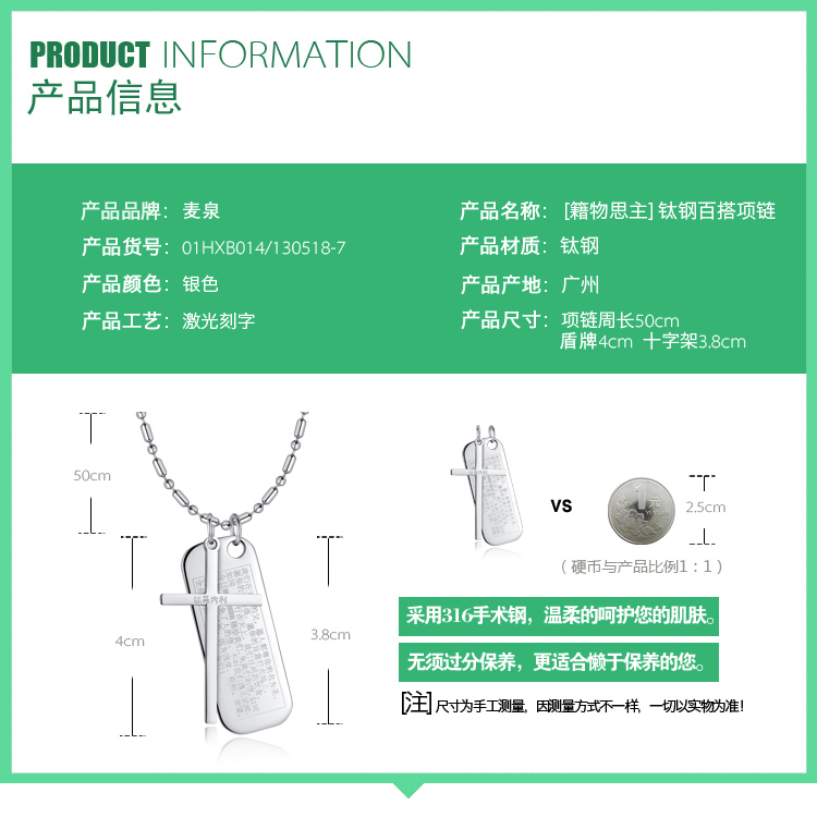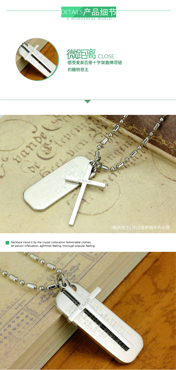 【名稱】麥泉316L鈦鋼項鏈 十字架軍牌盾牌飾品 刻字聖經主禱文基督教禮品