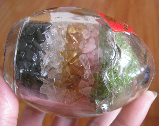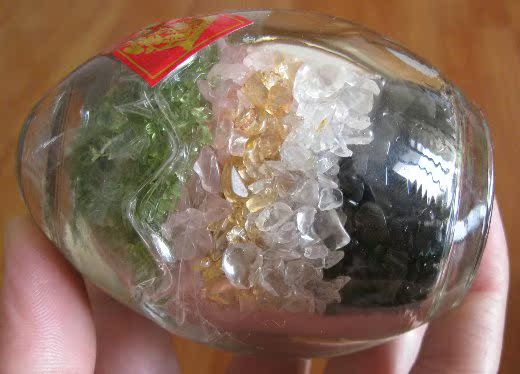 五行球(五谷豐登)是由純天然水晶填充:橄欖石,粉晶,黃水晶,白水晶,黑瑪瑙。擺放在電腦桌上美觀大方,寓意吉祥!是防輻射招財首選之一!創意新穎!