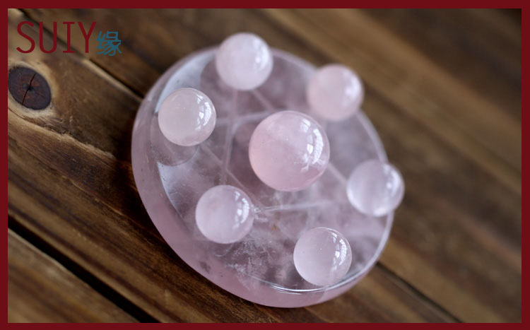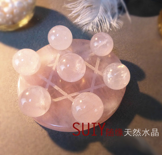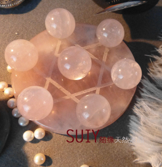 ![]() ![]() ![]() 七星陣一定是七顆粉晶球的 七顆水晶球的直徑是22mm 底盤的粉晶直徑110mm 比手掌大很多的