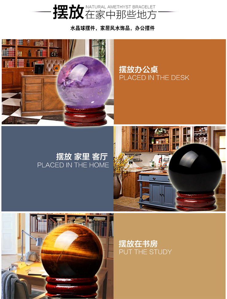 風水閣五行粉水晶球擺件紫水晶虎眼石東陵石黑曜石把玩球