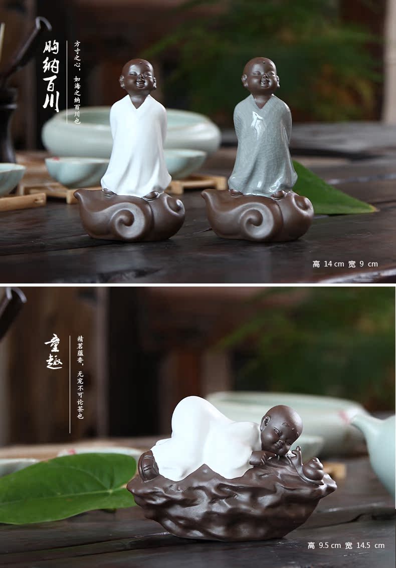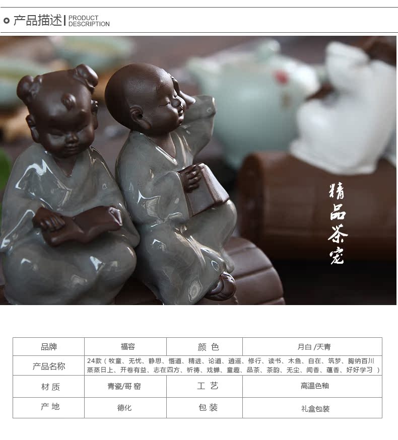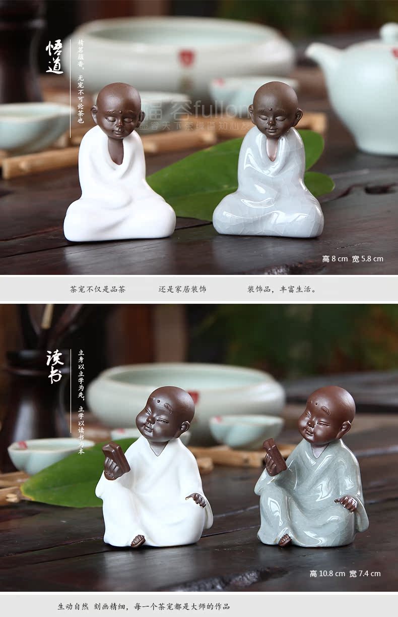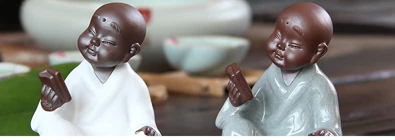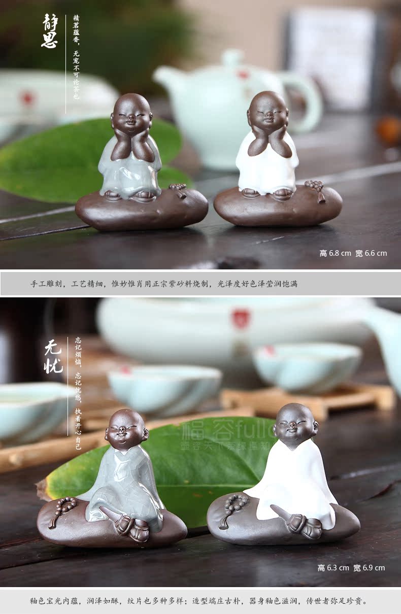 福容茶具汝窯茶寵小和尚 青瓷茶道擺件書房擺設哥窯紫砂茶寵精品