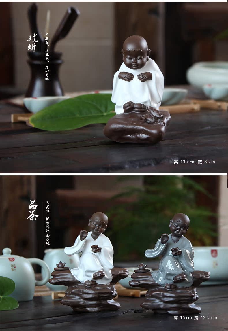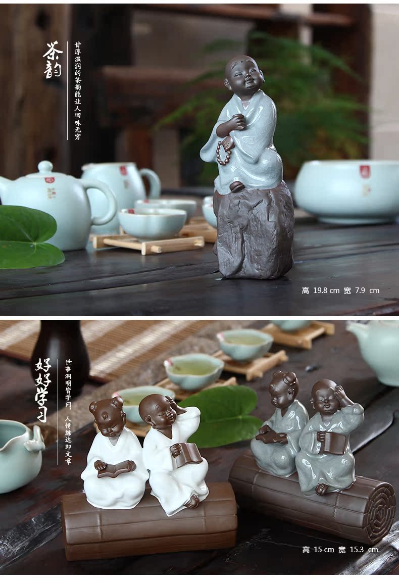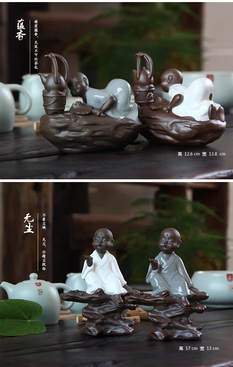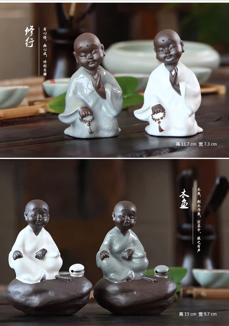 福容茶具汝窯茶寵小和尚 青瓷茶道擺件書房擺設哥窯紫砂茶寵精品