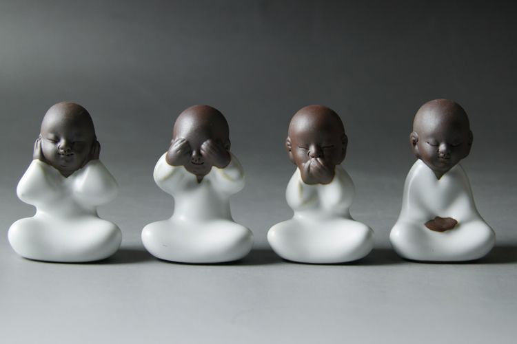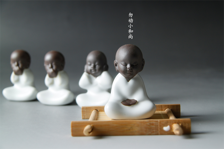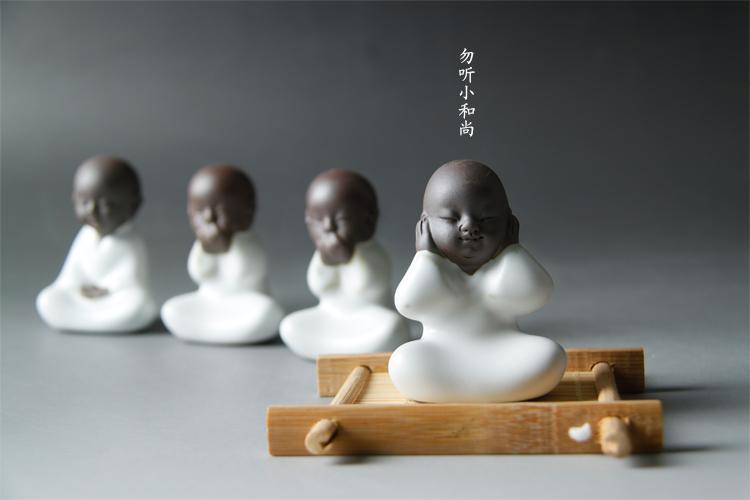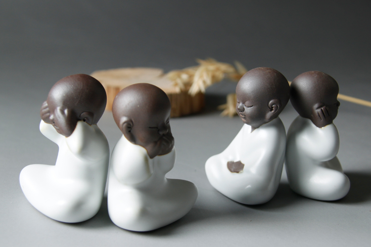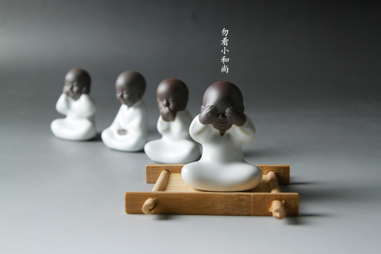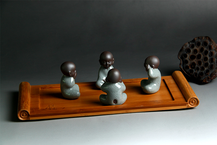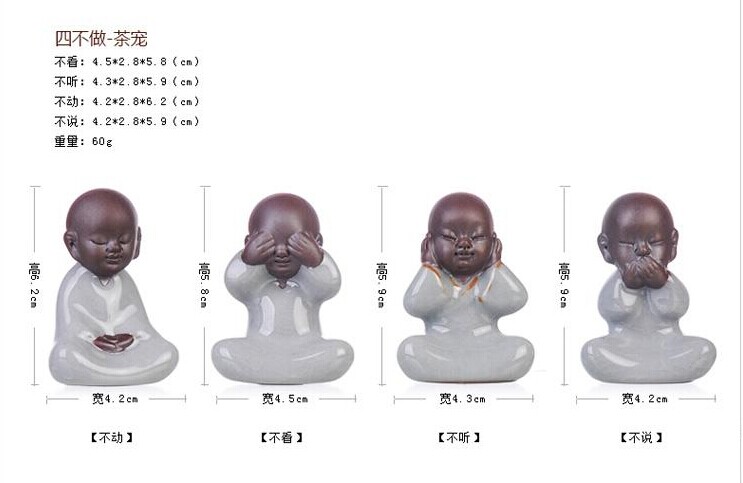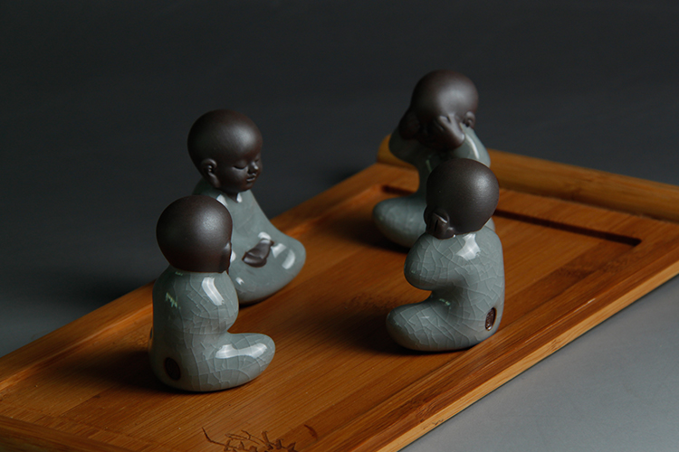四不茶寵小和尚紫砂茶寵擺件陶瓷禮品茶玩汝窯小和尚哥窯開片茶寵