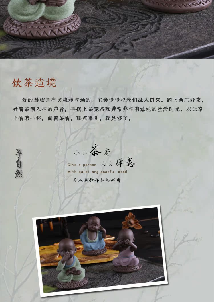 新品三不小和尚茶寵紫砂茶玩 功夫茶具配件精品汽車擺件茶趣陶瓷