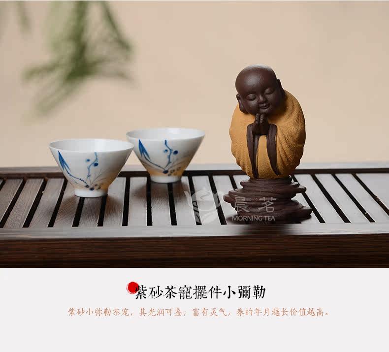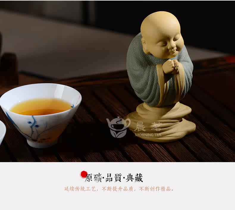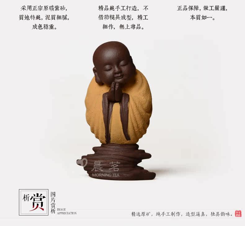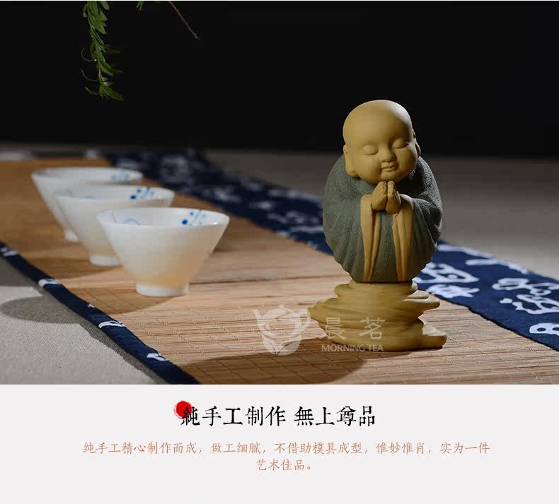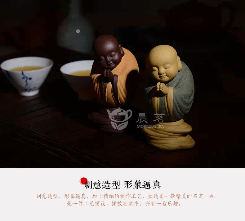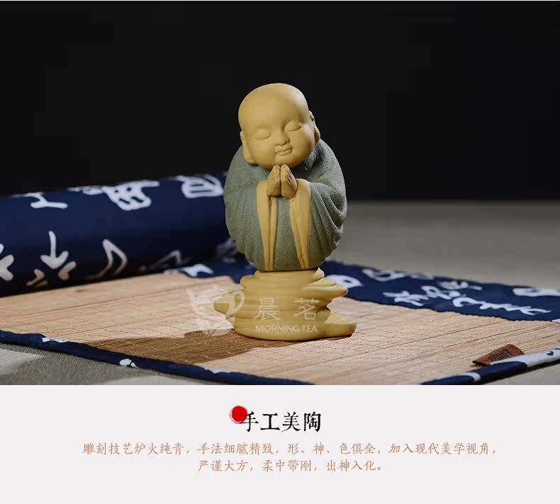 晨茗精品宜興紫砂茶寵擺件小和尚功夫茶具茶盤創意茶玩雕塑彌勒佛