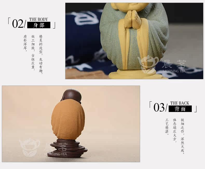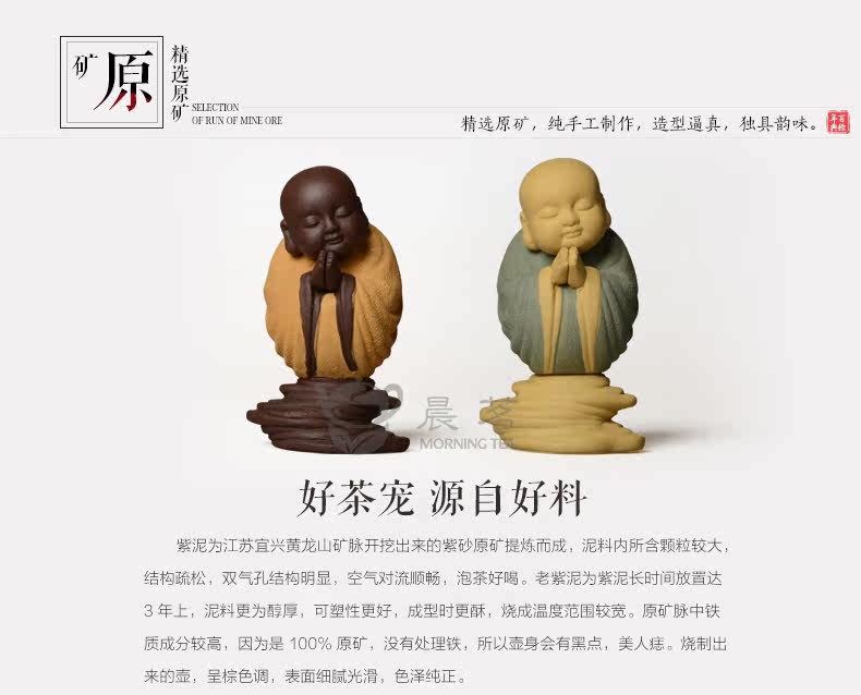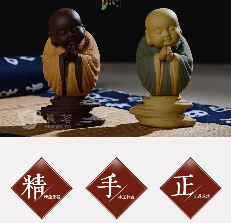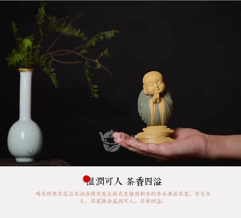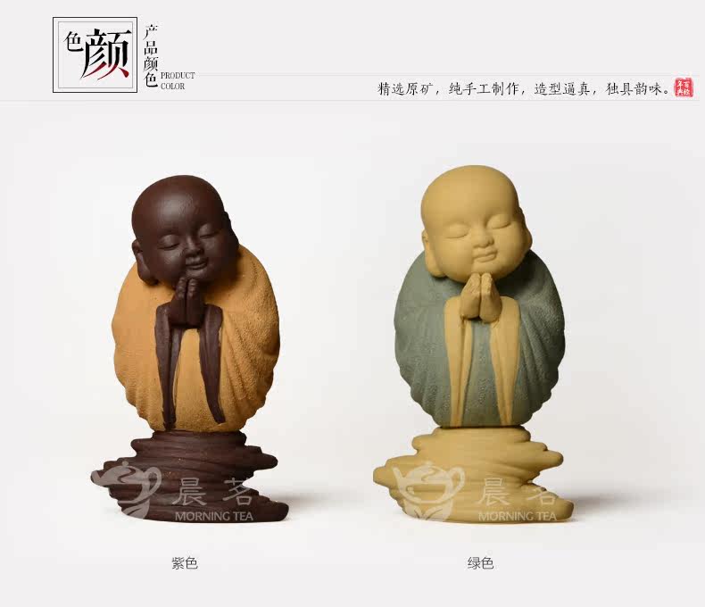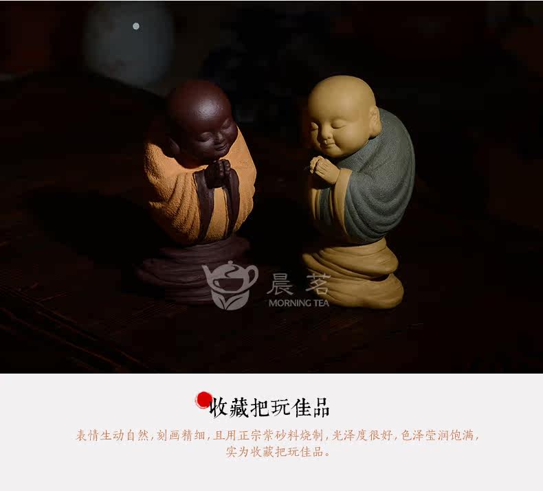 晨茗精品宜興紫砂茶寵擺件小和尚功夫茶具茶盤創意茶玩雕塑彌勒佛