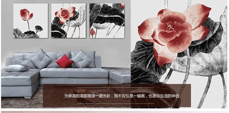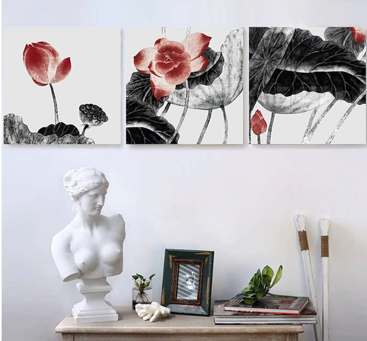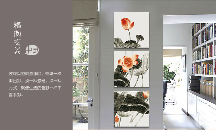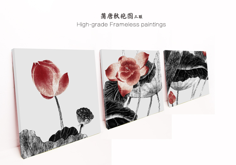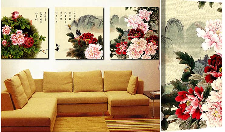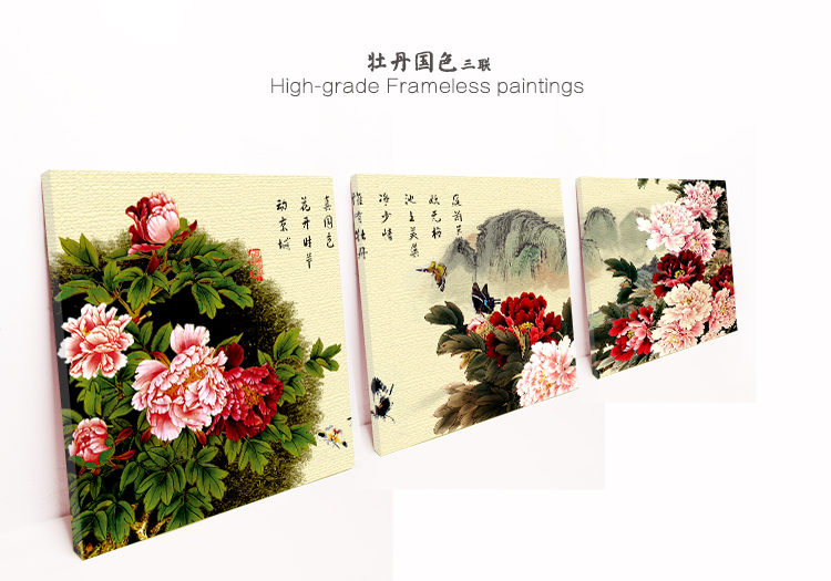 客廳現代簡約新中式三聯畫掛畫電表箱國畫牡丹國色 蒲唐秋艷圖