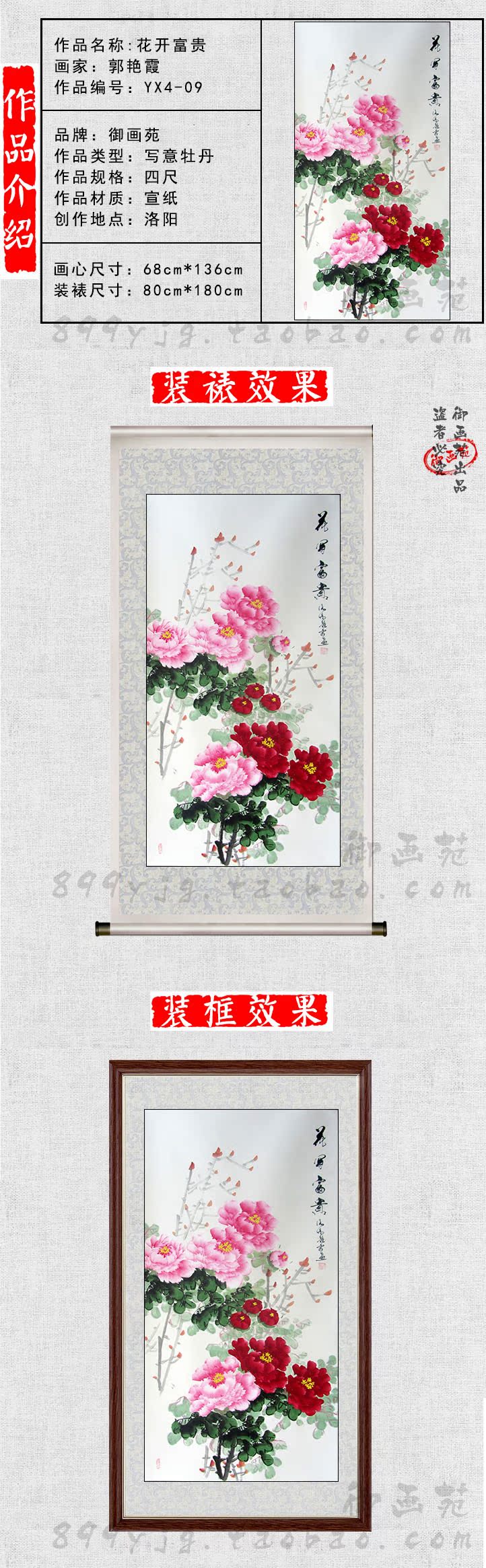《洛陽御畫苑》國畫牡丹畫風水圖 純手繪客廳四尺鬥方花開富貴