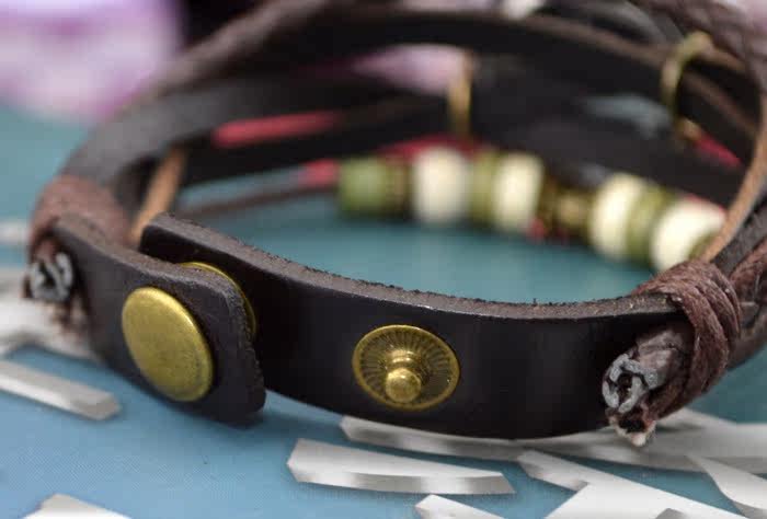 【材質】真牛皮,石英表,合金,木珠,蠟繩