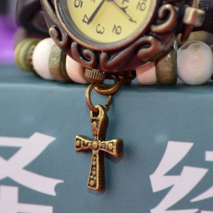 【名稱】真牛皮手鏈手表手鏈表 女款 十字架 韓版 基督教禮品飾品特價