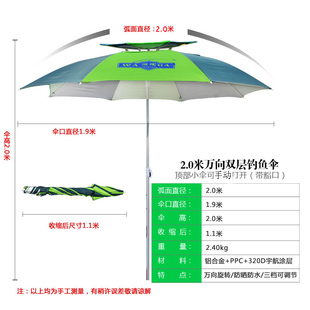 釣魚傘雙層開口防曬垂釣傘2米萬向超輕釣傘折疊防雨特價晴雨傘